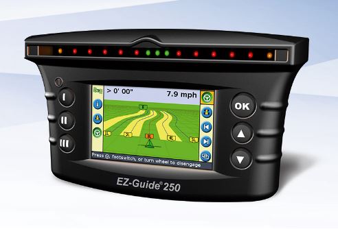 Monitor com receptor de GPS integrado, barra de luzes com 15 LEDs, tela colorida de 11 cm (4,3"), porta USB. Funções de mapeamento de bordaduras, pontos, linhas, forma livre e áreas. Recursos que permitem a transferência de informações para computador via USB para impressão de mapas de cobertura e relatórios. Compatível com sinal DGPS gratuito. Atualizações possíveis: piloto elétrico Ez Steer.